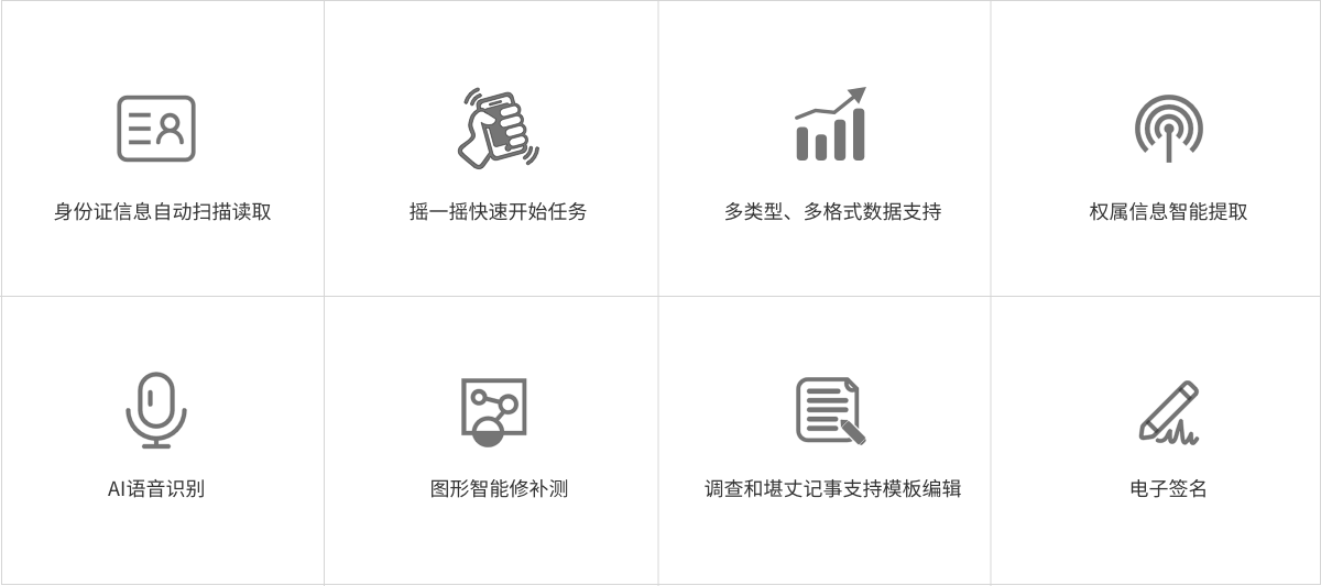 今奧科技針對傳統土地權屬調查工作中存在的任務重、效率低、周期長、成本高的痛點研發今奧智能房地權屬調查軟件,通過應用現有的3S一體化和新一代移動互聯網技術,采用身份證智能掃描識別、搖一搖快速任務、快拍快調等先進方法,降低資金和人員投入、減少工作手動和反復輸入的錯誤風險,將不動產權籍調查工作效率提升3-5倍。